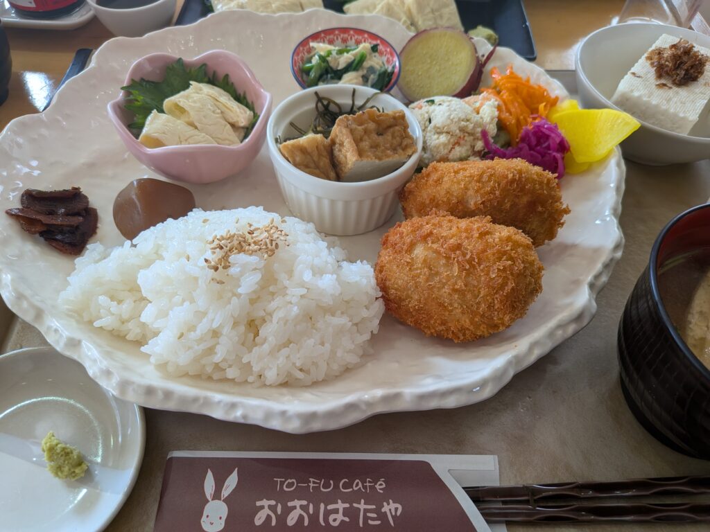 お豆腐を使ったコロッケの定食をたべました〜お豆腐づくしで優しい味で美味しかったです😊