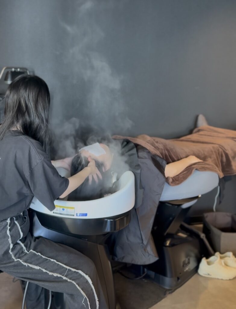 nineでは、お客様にあったコースメニューを取り揃えております。ヘッドスパ専用のシャンプー台でベットに寝ているような感覚でヘアケアを受けられ、ヘッドスパ専用のヘアミストを与えることにより、ヘッドスパとトリートメントの効果を高めながら施術していきます。