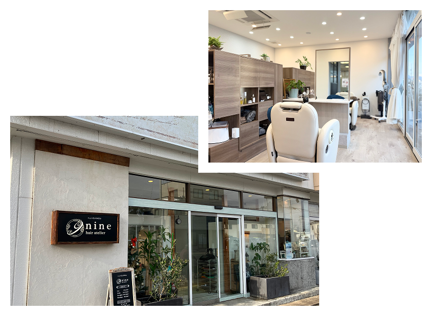 | 店名 | hair atelier nine 森合店(ヘアー アトリエ ナイン モリアイテン) |